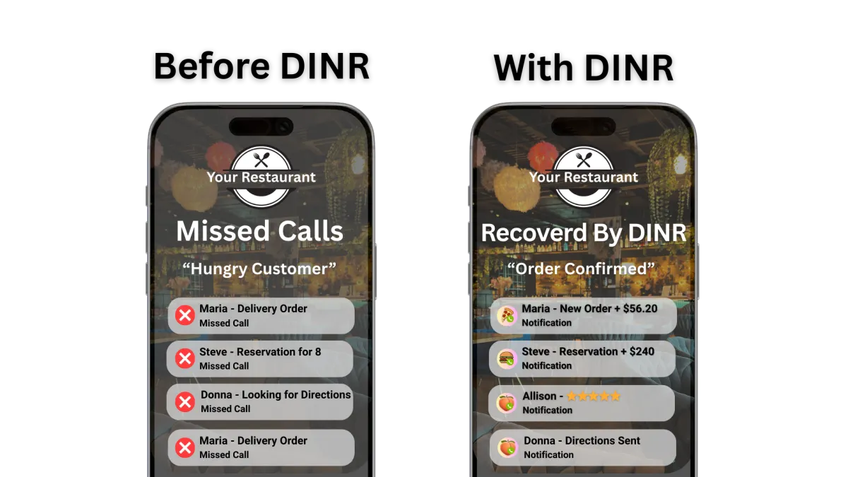 Every missed call = a lost customer. DINR texts them back instantly so you don’t lose the sale.